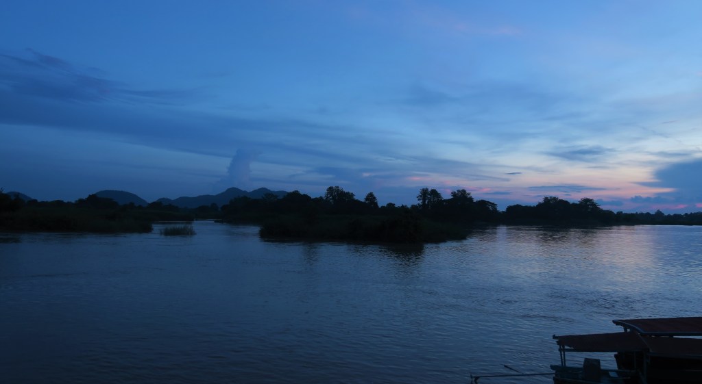 Nosotros fuimos a Don Det y llegar aquí fue toda una aventura. Cogimos un autobús en Thakhek que nos llevaría por la noche hasta Don Khon, donde cogeríamos un barco para Don Det. El trayecto de autobús nocturno que debía durar unas 8 horas se convirtió en 12. Además del retraso habitual, ya que los trayectos siempre son más largos de lo que dicen, hicimos una parada en la que por algún motivo tuvieron que cargar decenas de puertas y una moto, así que estuvieron más de una hora de tetris para sacar todo lo que había en el bus y meter las puertas. Algunas cosas que estaba en el maletero las subieron, tuvieron que recolocar a todo el que estaba sentado atrás ya que toda esa zona se utilizó para almacenar las miles de cosas con las que iban los laosianos, cajas de pescado eran algunas de sus pertenencias. Cuando por fin cuadraron todo, llegó el momento de subir la moto. Improvisaron una baca y la subieron al techo del autoús, sin duda la parada de bus más bizarra y larga de mi vida.