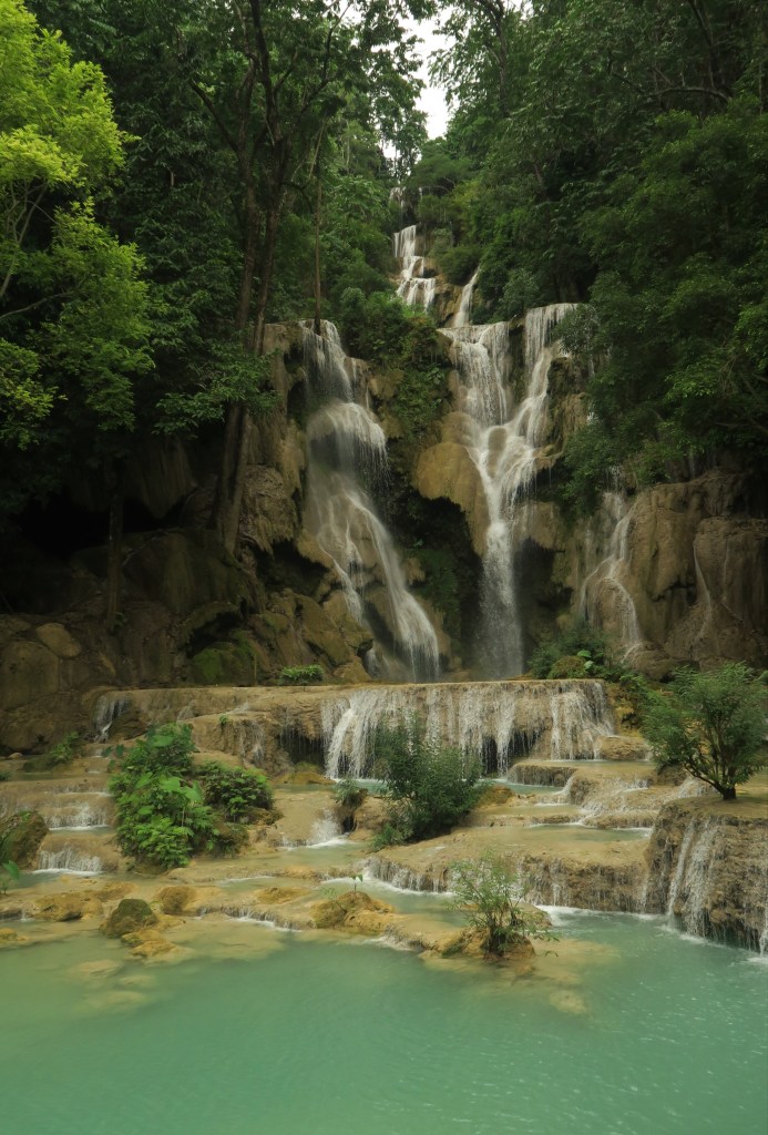 A las afueras de la ciudad se encuentras las casacadas Tat Kuang Si, las que considero de visita obligatoria. y a las que fuimos en nuestro tercer día. La zona es una especie de parque natural por donde te puedes mover y bañar libremente. A medida que vas subiendo y adentrándote en esa jungla iréis encontrando varias cascadas y piscinas naturales que crean paisajes preciosos. El tamaño de las cascadas va creciendo hasta que llegas a la más grande todas que se puede apreciar desde un puente de madera mientras te da el agua en la cara. Es un lugar precioso, con una mezcla muy intensa de verde y azul en la que además de admirar las vistas pasas un buen rato dándote un baño y podrá vivir la experiencia de ponerte debajo de una cascada.