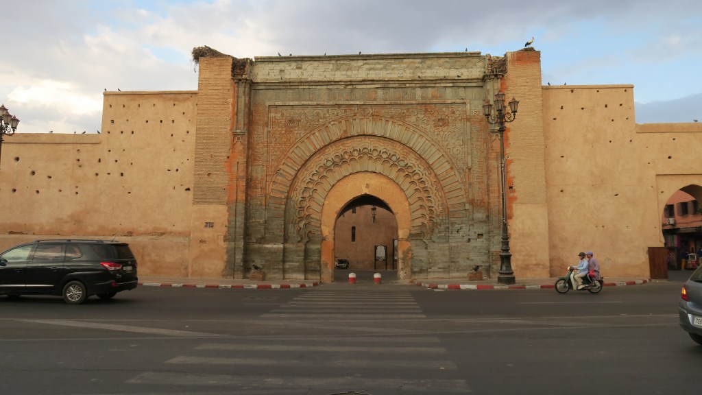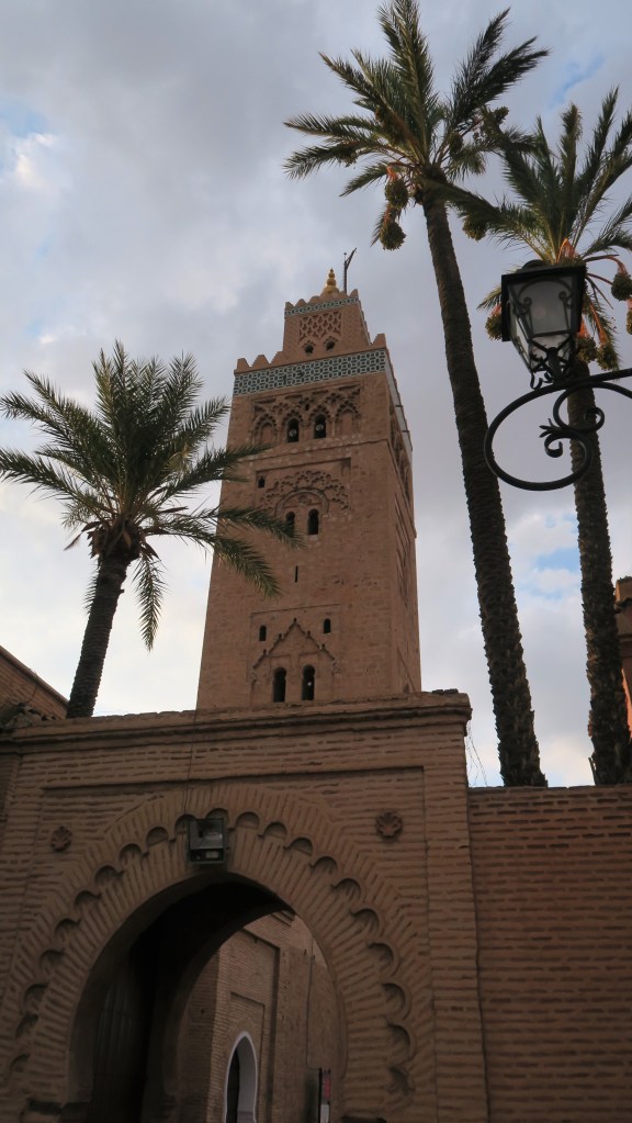 Continuamos nuestra ruta y llegamos a Bab Agnaou, una de las puertas de entrada de la muralla que da acceso a la Medina. Esta es una de las principales y más emblemáticas. Desde allí fuimos a la mezquita Koutoubia, uno de los lugares más emblemáticos de la ciudad por su minarete de 66 metros de altura, el cual nos sirvió de referencial para orientarnos durante nuestros tiempo en la ciudad.
