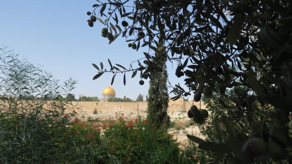 Continúamos subiendo y llegamos al Monte de los Olivos, lugar lleno de los árboles que le dan su nombre y donde puedes visitar la Capilla de la Ascensión, punto desde el que se dice que Jesús subió a los cielos. En la zona puedes descansar y admirar las vistas de la ciudad. Es una zona donde la religión crisitiana está muy presente con lo que verás gente rezando y zonas en las que se celebran misas.
