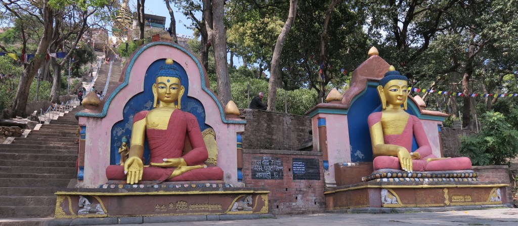 En este templo fue la primera vez que veíamos los ojos de Buda, los cuales representan sabiduría y compasión y que se encontraban en la parte más alta, para observar todo y es que desde este templo tienes unas muy buenas vistas de toda la ciudad de Katmandú.
