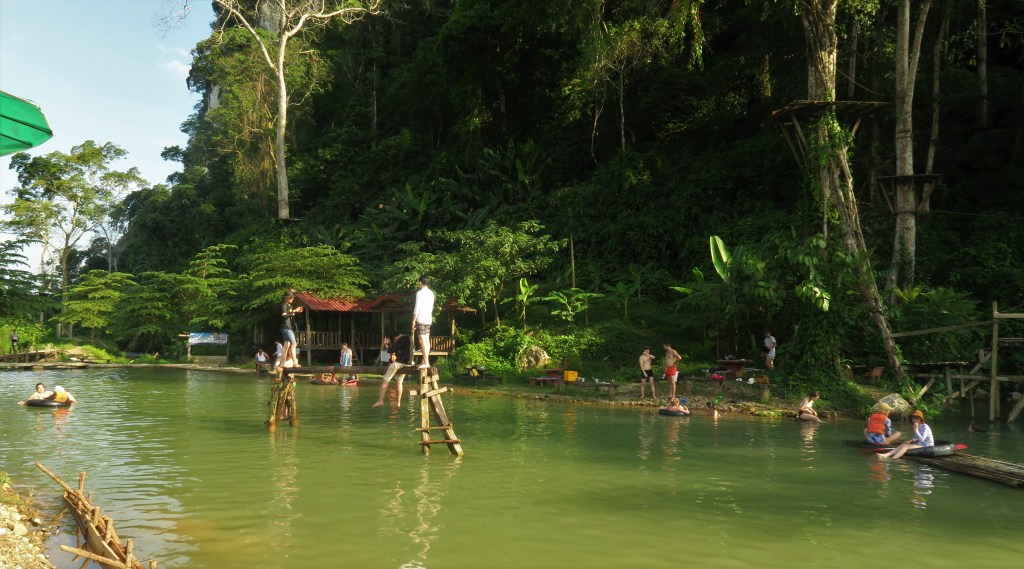 Este pueblo esta rodeado de naturaleza y lagoons, ideal para coger una moto, uno de los mapas de papel que te dan y perderse. Una de las sensaciones que más me gustan de viajar es el hecho de elegir en el momento a donde vas. De coger un mapa (no el google maps) y decir pues vamos aquí y aquí y luego llegas al primer sitio ves que es increíble y decides quedarte allí más tiempo y no ir al segundo punto en el mapa, pero a lo mejor si al tercero, que aunque no entraba en los planes pilla más cerca. Mis 3 días en Vang Vien fueron eso (y alguna que otra fiesta) y me encantaron. Paso a contaros en detalle lo podéis hacer en este lugar: