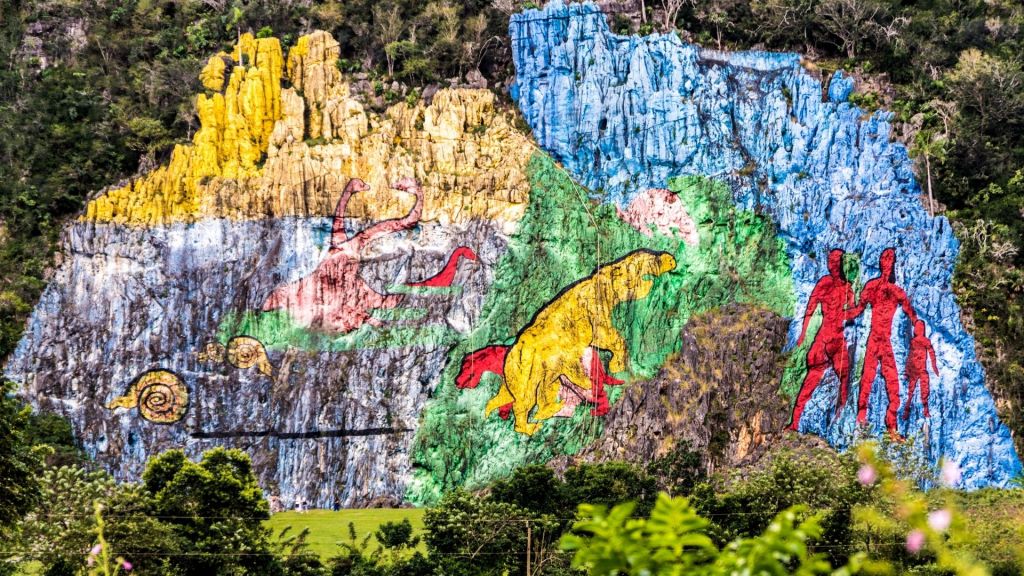 Uno de los lugares más emblemáticos de la zona, un mural de 120 metros de altura realizado en el mogote Pita. Sus colores son intensos y llamativos y representa imágenes prehístoticas. Se encuentra a 3 km del pueblo y puedes ir visitarlo en bici o taxi o pedirle al conductor que pase por allí si haces alguna excusión desde Viñales (como a Cayo Jutías) o cuando llegues o te vayas del pueblo.