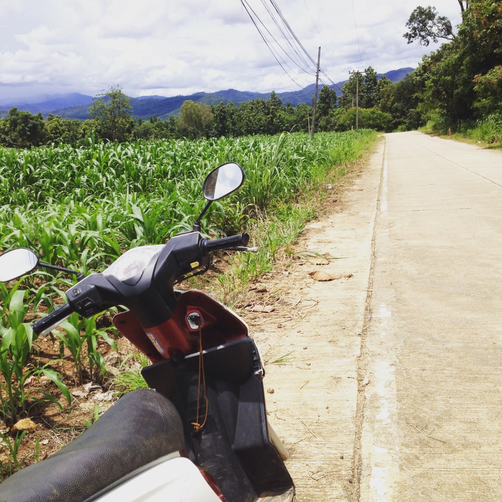Nosotras no somos mucho de moto, pero nos dimos cuenta que no nos quedaba otra que lanzarnos a probar si queríamos conocer la zona, así que fuimos al lugar de alquiler. Allí comentamos que no teníamos mucha práctica, así que 3 tailandeses que trabajaban allí nos subieron a cada una en una moto y nos llevaron a un descampado donde nos dieron las motos, nos explicaron como acelerar y frenar y a practicar. La estampa era digna de ver, 3 chicas con bastante poca confianza dando vueltas en un descampado lleno de barro, aún recordamos entre risas ese momento. Cuando los profesores improvisados vieron que nos podíamos defender nos llevaron de vuelta al puesto de alquiler para pagar y nos dieron un mapa de papel con los sitios más emblemáticos de la zona (obviamente las distancias del mapa no estaban a escala, pero sirivió para guiarnos). Y así, contra todo pronóstico unos minutos después estábamos por las carreteras de las verdes montañas disfrutando de los paisajes y de esa sensación de libertad que te da ir por cuenta y decidiendo sobre la marcha la siguiente parada. La verdad es que no confiábamos mucho en nuestra habilidades como motoristas, pero sobrevivimos a la aventura, así que desde aquí animo a cualquiera que vaya a Pai y se encuentre en la misma situación a que al menos pruebe, que para coger un tuk-tuk siempre se tiene tiempo.