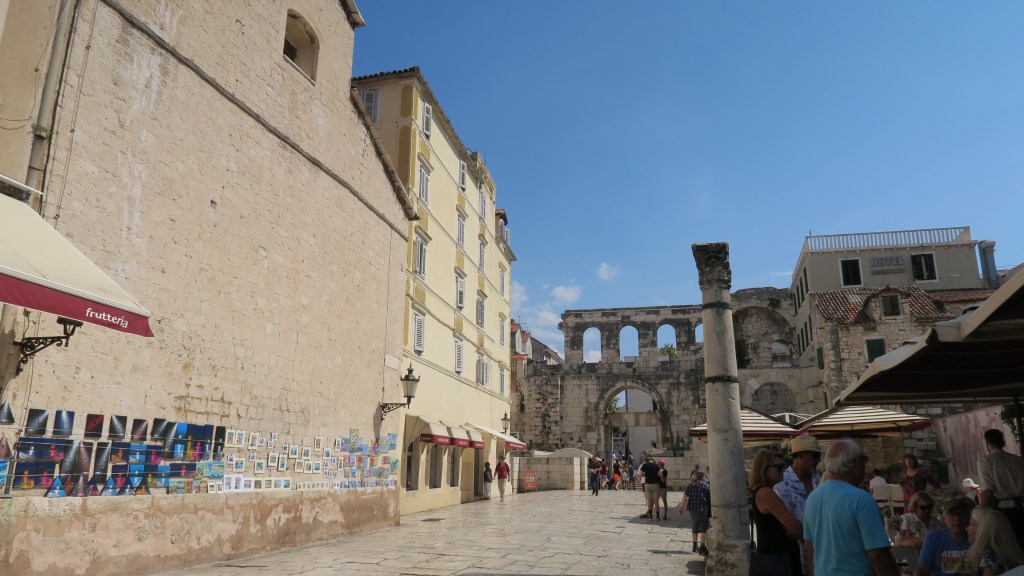 Sin duda la atracción principal de la ciudad es el palacio y sus ruinas. Fue construído en el siglo IV y se encuentra rodeado por una muralla que tiene 4 puertas de entrada: la de oro al norte, la de bronce al sur, la de hierro al oeste y la de plata al este. Al entrar por sus puertas cruzarás bonitos arcos y pasarás por calles estrechas llenas de tiendas y restaurantes y llegarás al Peristilo, la plaza principal que se encuentra en el centro de la ciudad y está bastante bien conservada. A su alrededor se conservan varias zonas en ruinas que se pueden recorrer por tu cuenta o en tours en los que te explican cual era la extension del palacio y lo que había en las zonas de las ruinas, es muy curioso imaginarse lo que un día fue.
