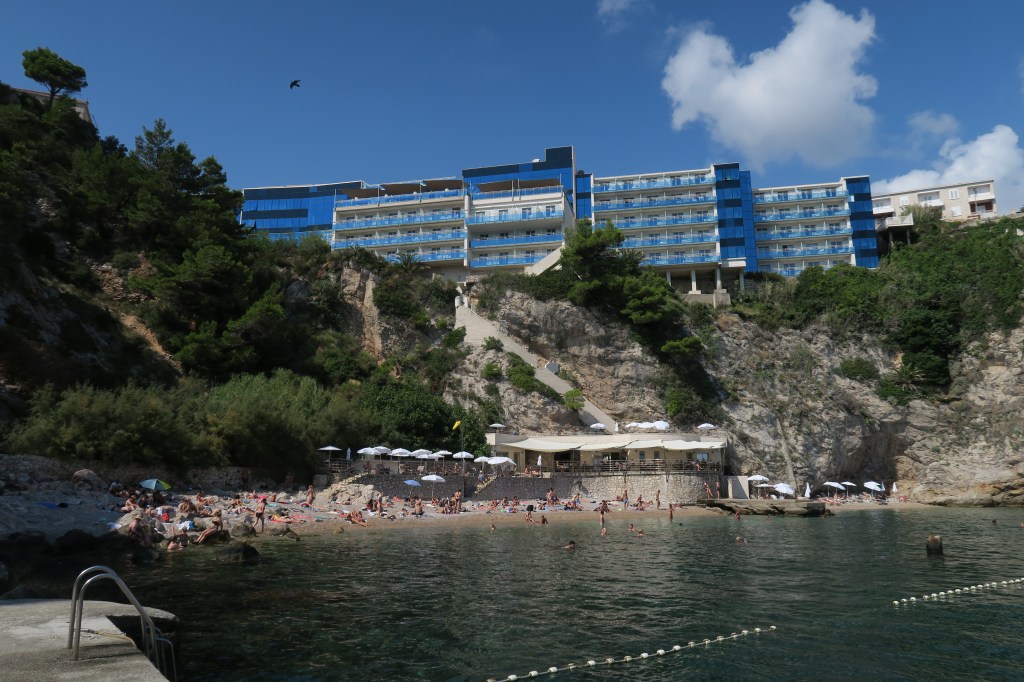 Si quieres ir a una playa en Dubrovnik te recomiendo Bellevue, al encontrarse fuera del centro es algo más tranquila y es más grande que las que hay por la zona que rodea la ciudad amurallada. Para acceder hay que bajar por unas escaleras que rodean la montañana de al lado hasta llegar abajo. Tiene zona de playa de piedras y otra con las típicas pasarelas de cemento junto al mar y hay sombras.