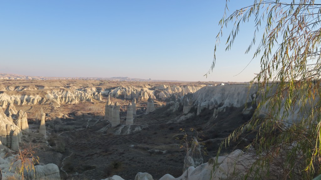 El valle del amor es otro de los imprescindibles de Capadocia ya que en él podrás ver altas columnas rocosas. Tiene una gran extensión y si tienes tiempo puedes pasear por sus caminos observándolo más cerca. Para una vista panorámica te recomiendo verlo desde el mirador del Swing café, donde hay columpios y lugares para hacer fotos.
