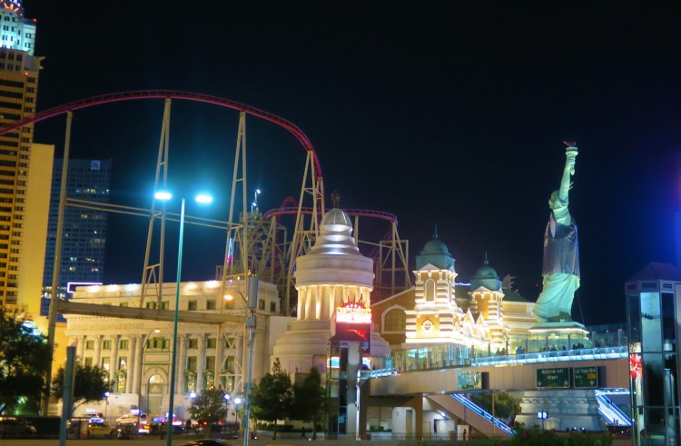Por la noche, cuando bajó el calor fuimos a dar un agradable paseo por El Strip, donde alucinamos con los incríebles hoteles que llenan la calle principal de la ciudad de luces y espectáculo y te hacen dar una vuelta por el mundo con sus temáticas. Te recomiendo pasar por este post en el que hay información sobre las actividades que puedes hacer en Las Vegas, lugares que ver e información para organizar tu visita.