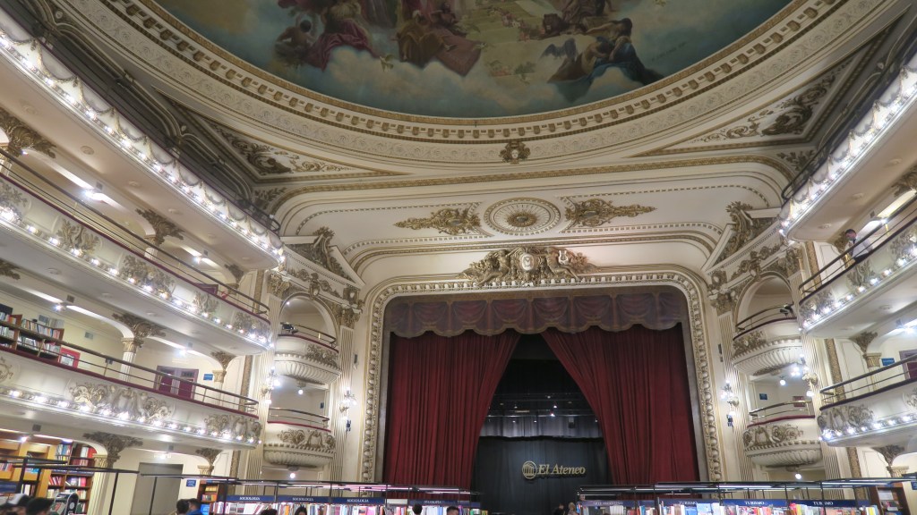 Terminamos nuestra ruta visitando el Ateneo Grand Splendid, un precioso teatro convertido en librería, sin duda una visita obligatoria si visitas Buenos Aires, además de admirar su bonita arquitectura y pinturas, podrás llevarte un libro de recuerdo, en mi caso, estando en Argentina, la mejor elección me pareció Mafalda.